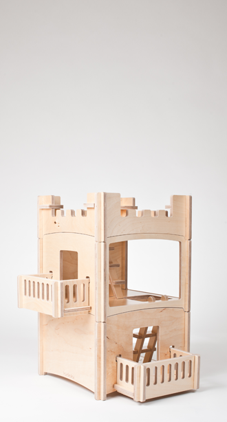 Designed by Martijn van Tilburg for Toideloi, the Stackhouse is a series of modular building sets that can provide children with hours of play. Castles, Chalet, Villages and Skyscrapers can be easily built and rearranged from the various pieces which are all made from clear lacquered Eastern European Birch plywood. The rooms are large and spacious, measuring 14" x 14" (width and depth) and are 9.5" high. The house works great with 1:12 scale furniture.
